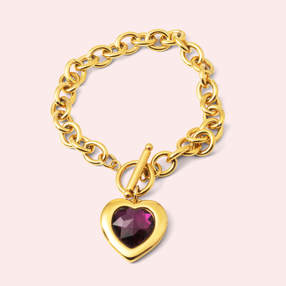 Belinda ατσάλινο βραχιόλι με μεγάλη καρδιά σε χρυσό και ασημί χρώμα