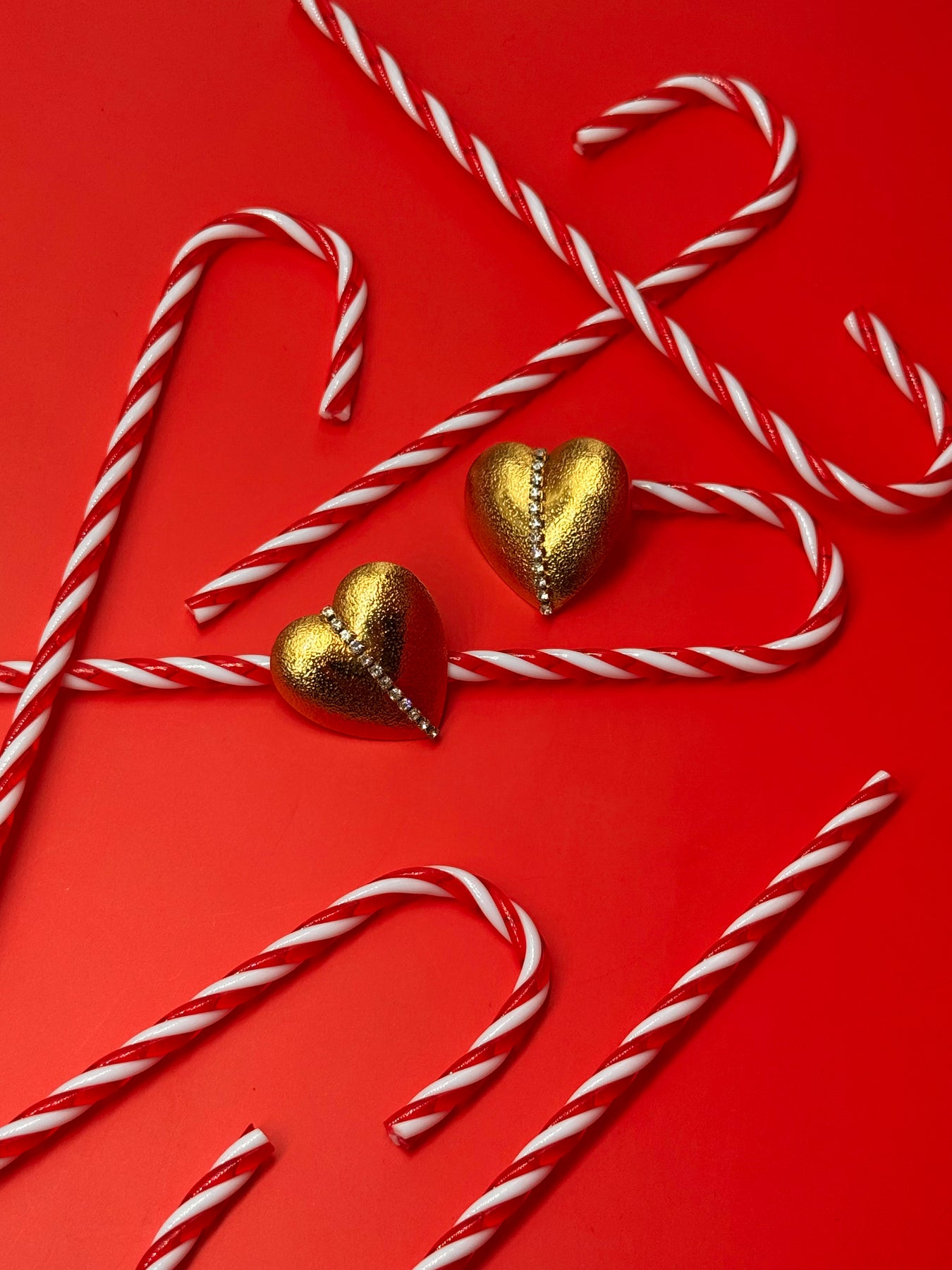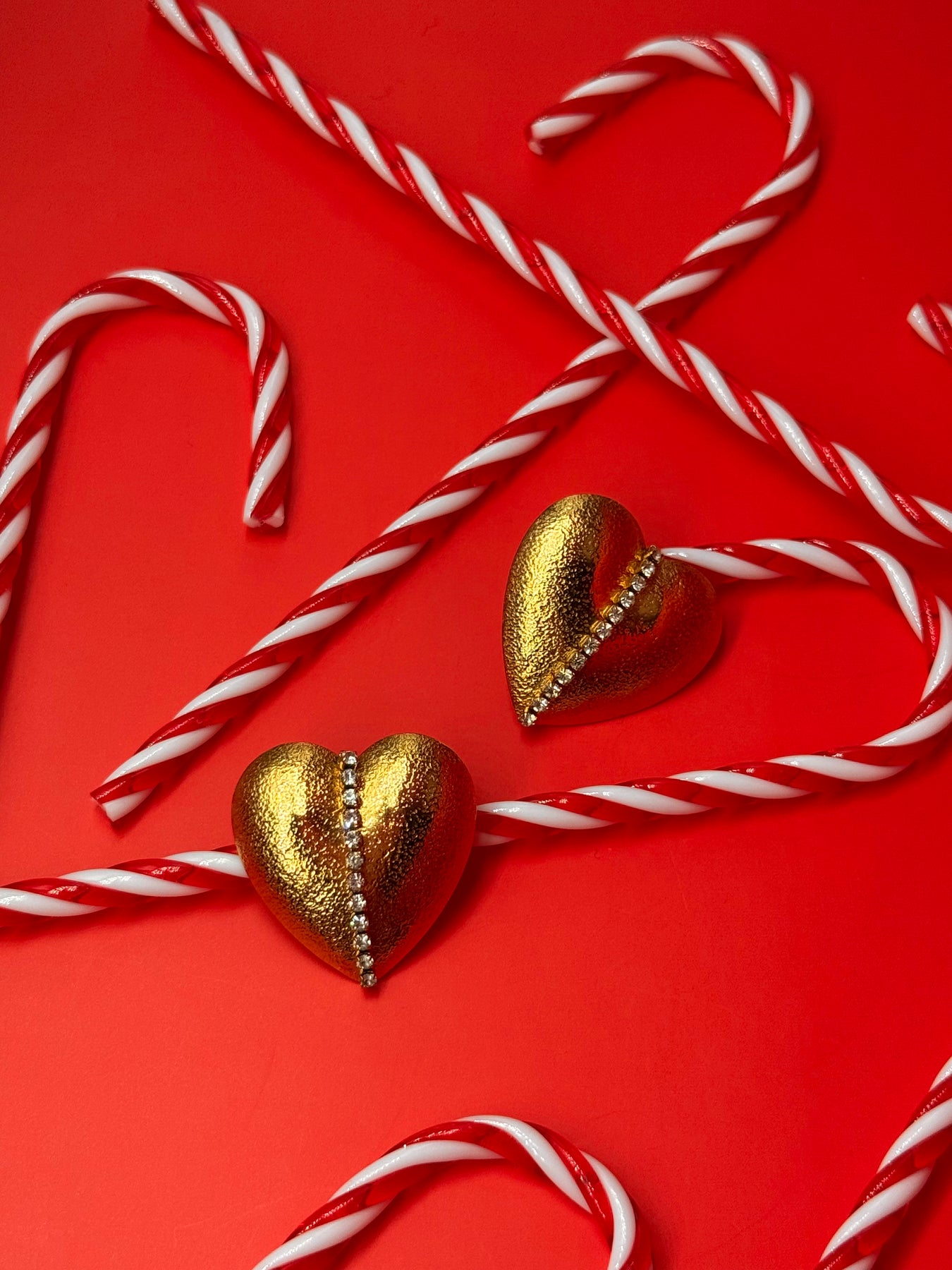 Gold Love σκουλαρίκια σε σχήμα καρδιάς με στρας. Κλείνουν στο πίσω μέρος με καρφάκι.