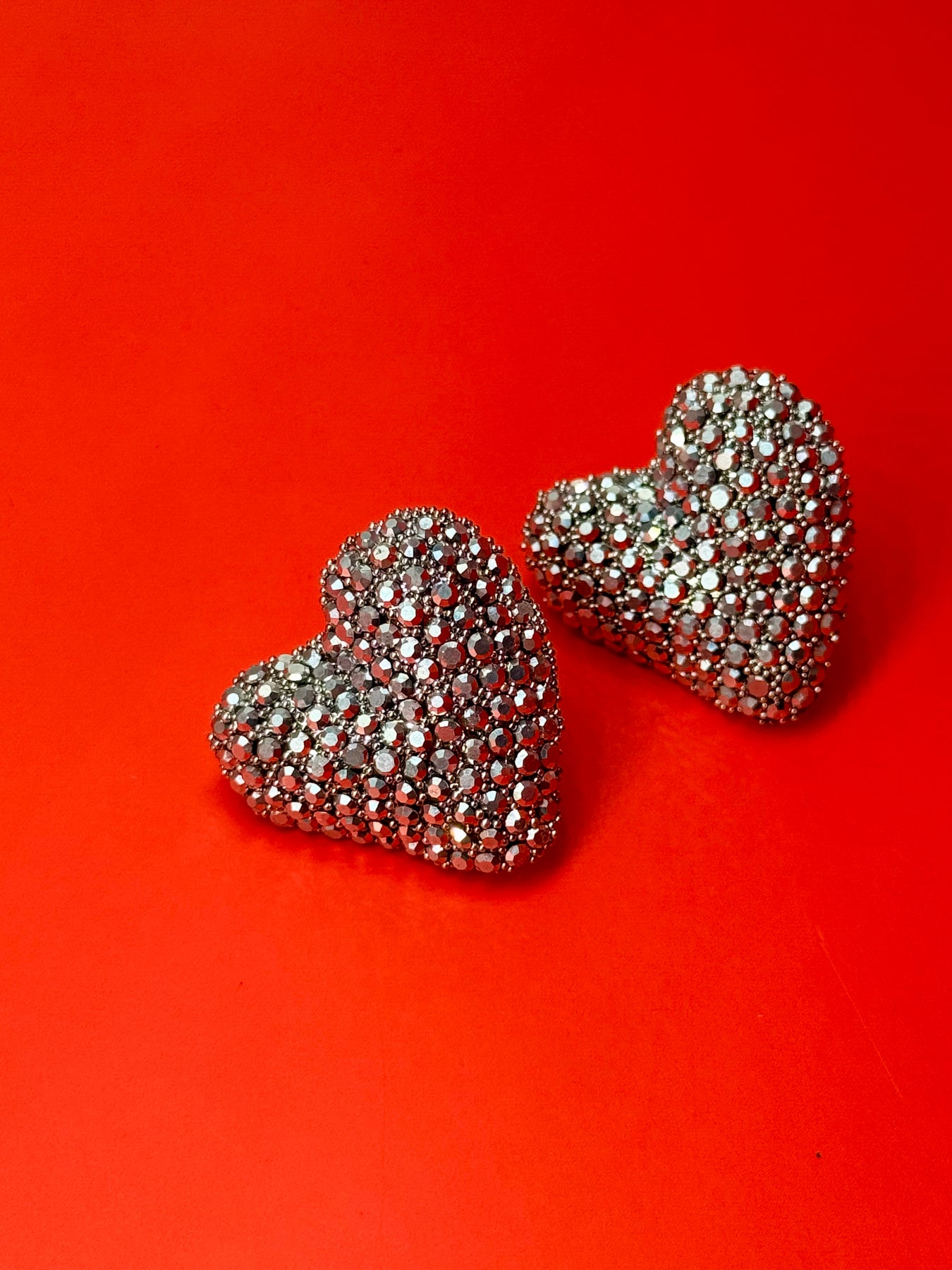 Love and Glitter σκουλαρίκια σε σχήμα καρδιάς με γκλίτερ και στρασάκια.Κλείνουν στο πίσω μέρος με καρφάκια.